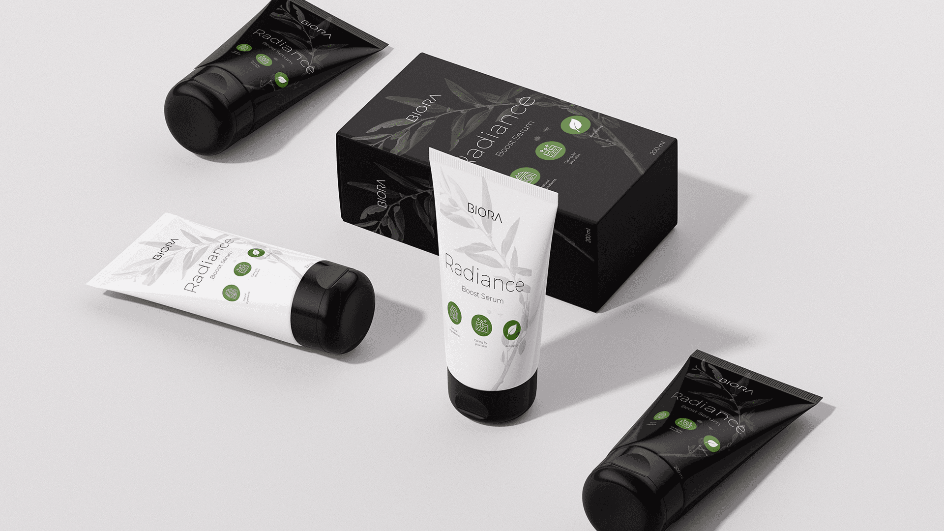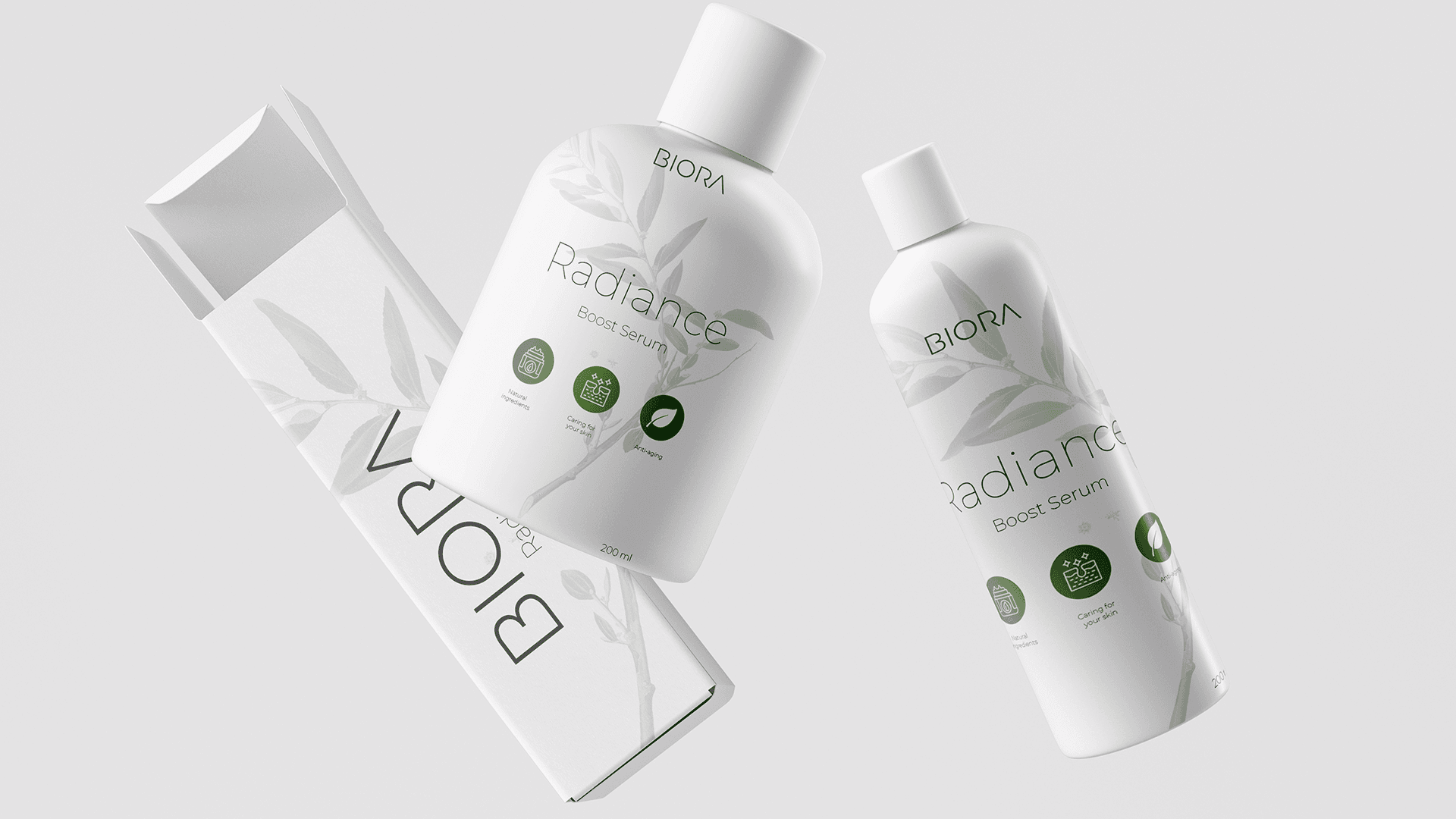 The Biora product range includes face serums, moisturizers, body lotions, and exfoliating scrubs, all carefully crafted to enhance natural beauty and promote healthy, radiant skin. With a minimalistic and sophisticated design approach, the packaging is intended to reflect the brand's ethos of purity and self-care.