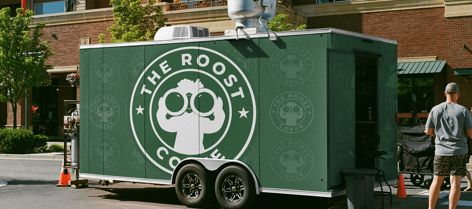 The mobile coffee trailer design has been particularly successful, acting as a moving billboard that generates curiosity and attracts customers in various locations. Its bold branding makes it easily spottable and has helped establish The Roost as a fixture in the local coffee scene.